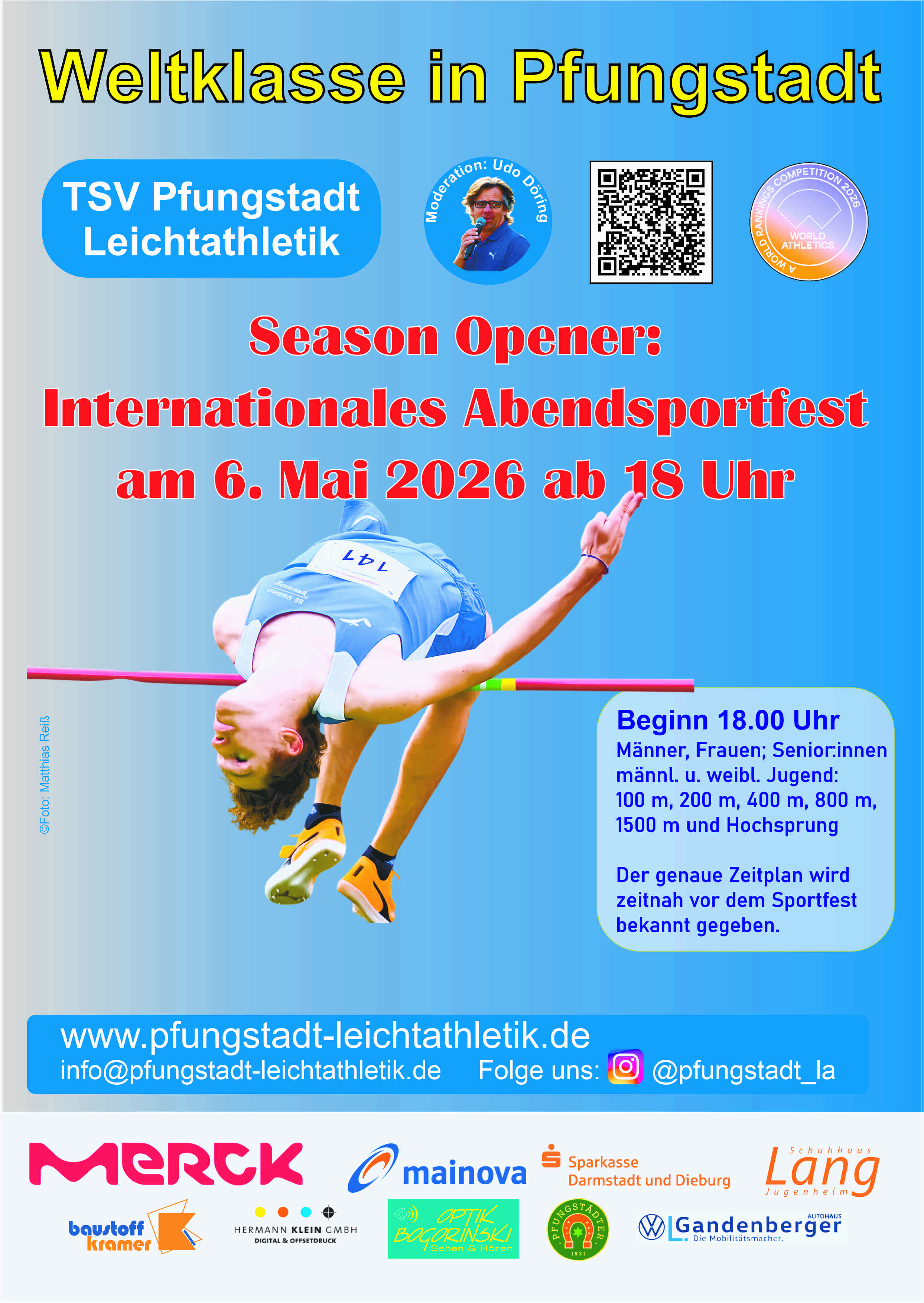 Jetzt für das 1. Abendsportfest der Saison in Pfungstadt via LADV melden.